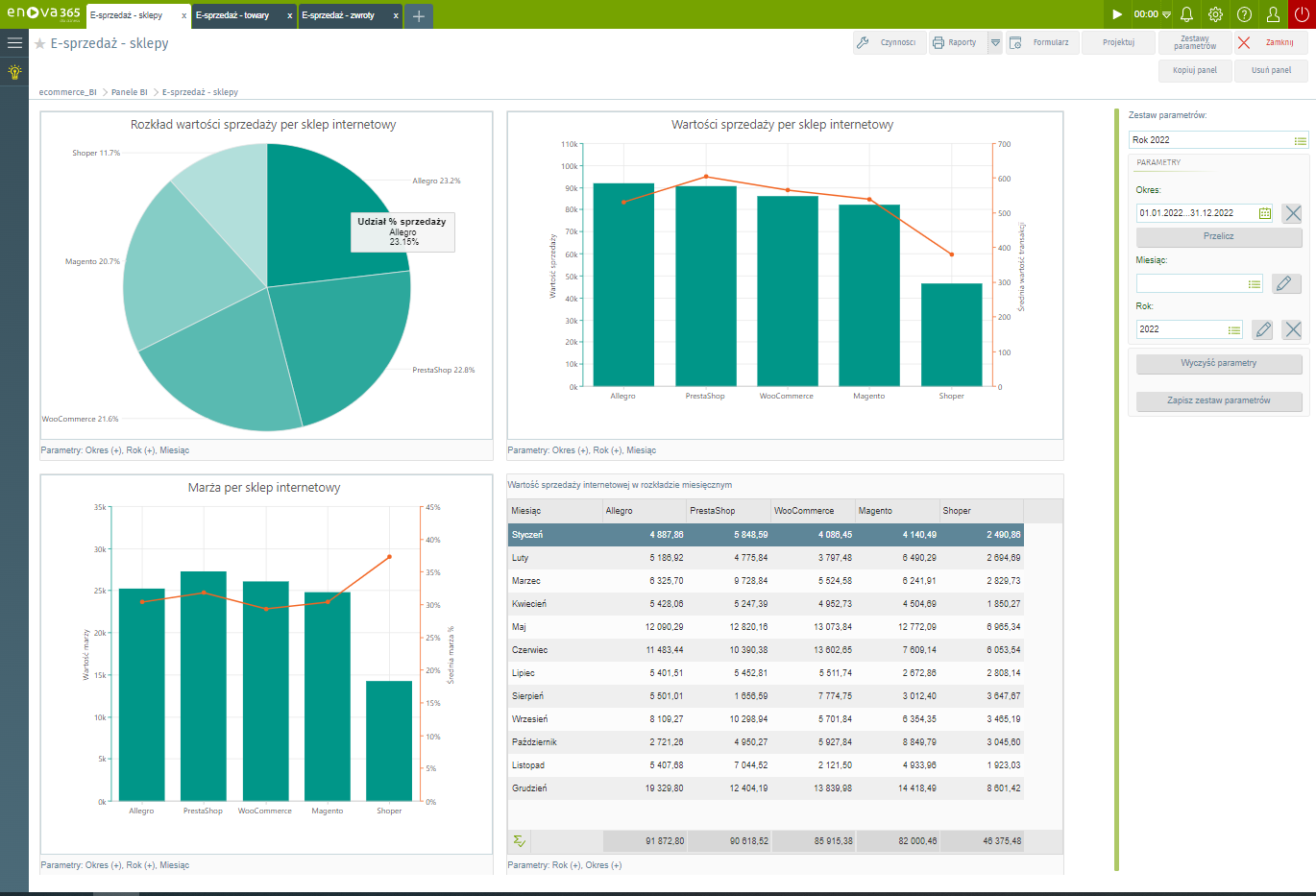 Dashboardy w enova365, zwane także panelami BI, dostępnymi w module Business Intelligence (BI), to znacznie więcej niż statyczne raporty. To dynamiczne narzędzia, które dostarczają wiedzę w czasie rzeczywistym, umożliwiając natychmiastowe reakcje i optymalizację procesów.
