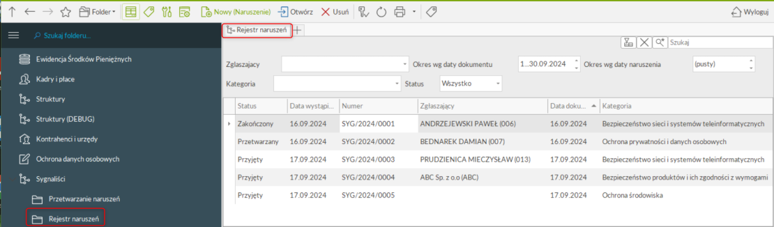 Rejestr zgłoszeń wewnętrznych