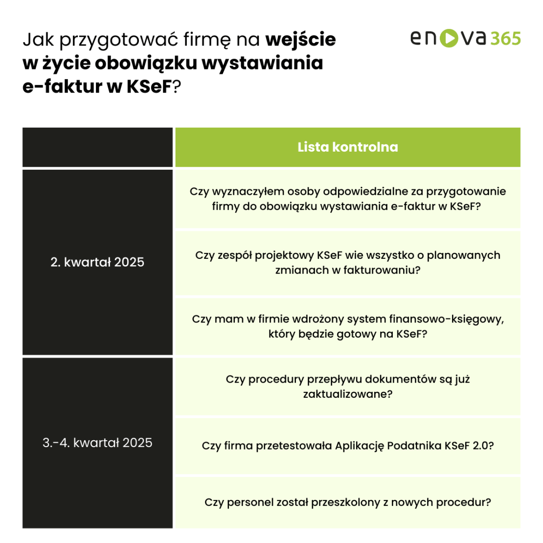 1. Czy wyznaczyłem osoby odpowiedzialne za przygotowanie firmy do obowiązku wystawiania e-faktur w KSeF?